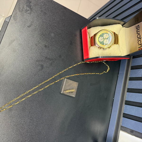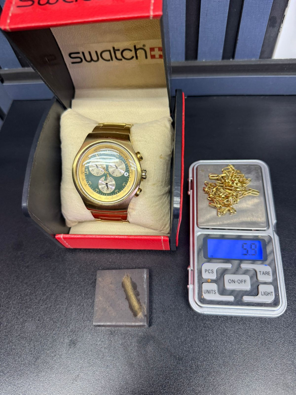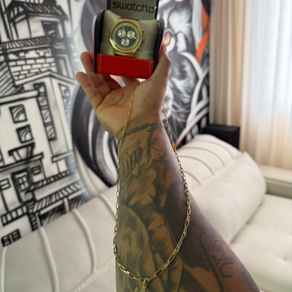 Swatch Cara Verde Cronometro Dourado + uma Corrente de Ouro 18k nova de 5.9 Gramas✨😍